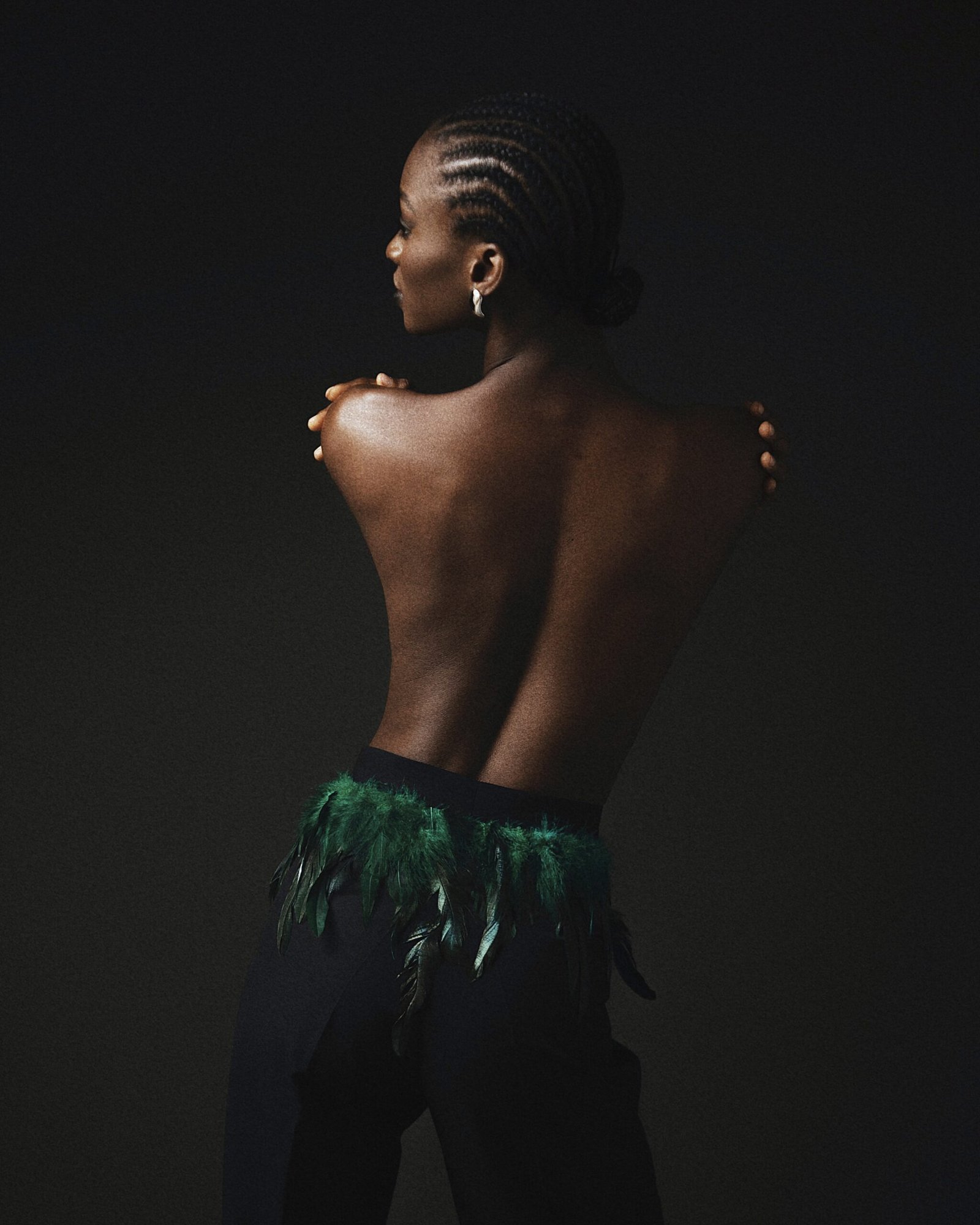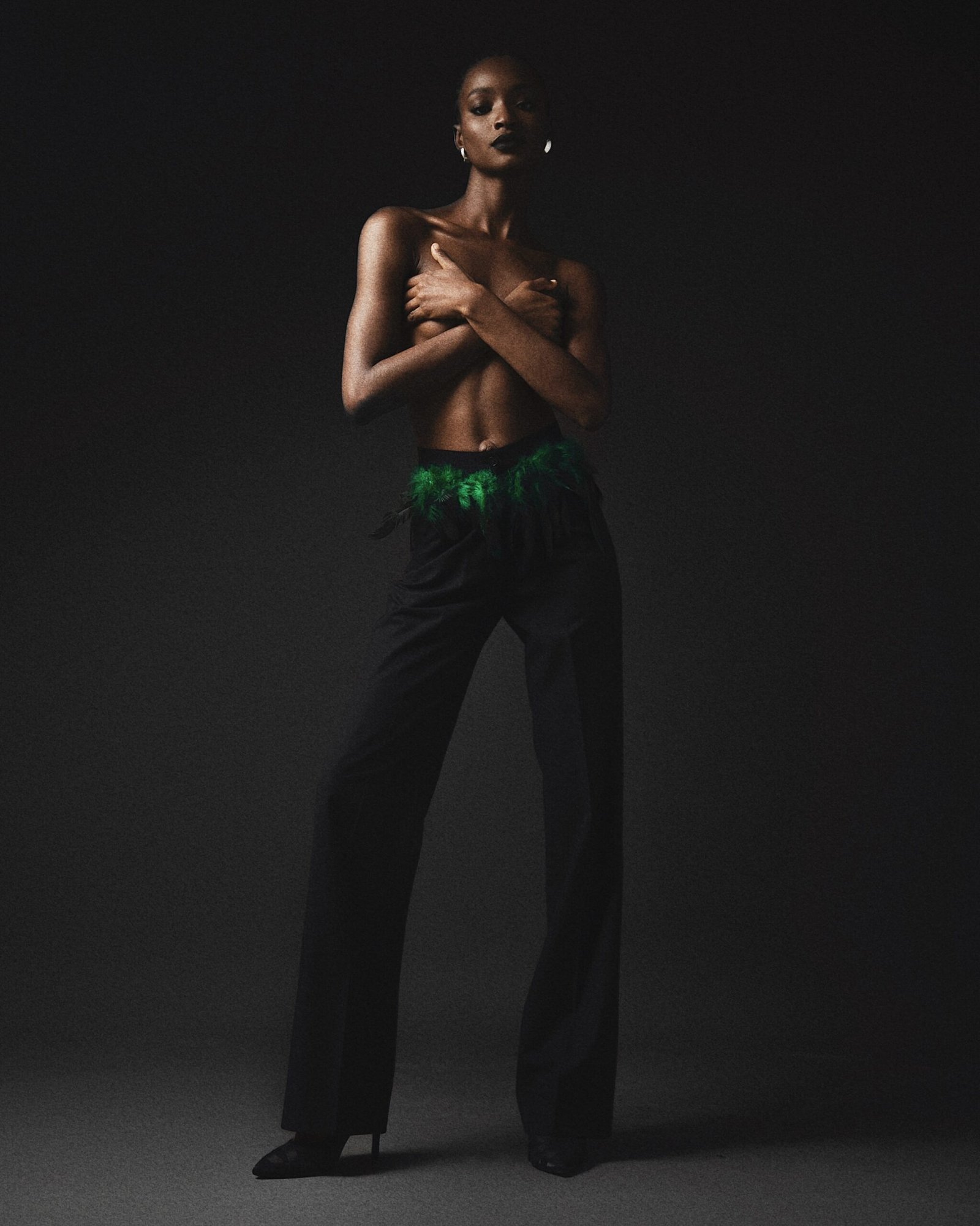 BLACK FEATHER DETAILED PAIR OF LOOSE PANTS.